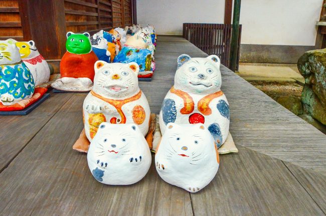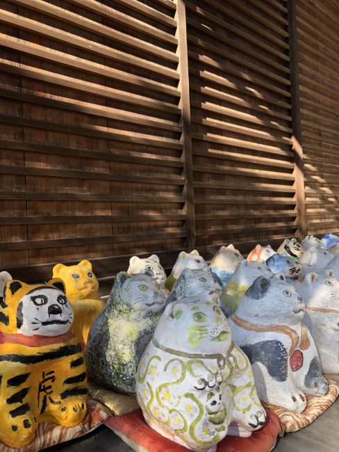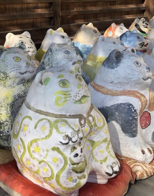 峰山町の金刀比羅神社の木島社境内に鎮座する全国唯一の「こま猫」、そのレプリカに絵付けをする体験です。猫は蚕を食べる鼠を追い払うため、丹後ちりめんの「守り猫」でした。