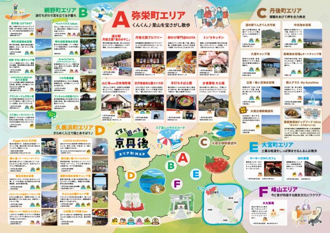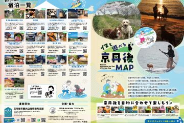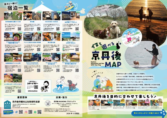 京丹後市観光公社弥栄町支部が発行する「イヌと遊べる京丹後MAP」には、本記事で紹介しきれなかったスポットや施設情報を多数掲載しています。