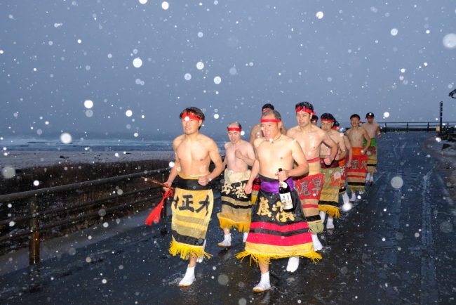 まち 雪舞う中 化粧まわし疾走伝統行事「百度打ち」住民の健康願う 相撲の化粧まわしをつけた上半身裸の男性たちが神社を参拝する伝統行事「百度打ち」が1日、京丹後市丹後町間人であった。丹後地域は前週から大雪が続き、この日も小雪が舞う中を男性たちが威勢の良い掛け声を響かせながら厳冬の漁師町を駆けた。 続きを読む