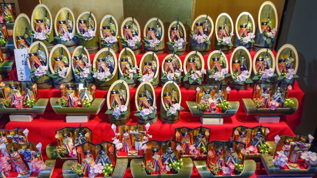また、久美浜町内の各家では、2月始めから地元女性の会が作った「竹雛」を展示し、お客様をお迎えします。(稲葉本家では、竹雛の展示販売あり)