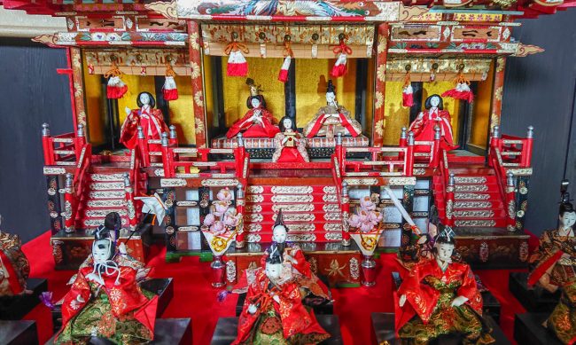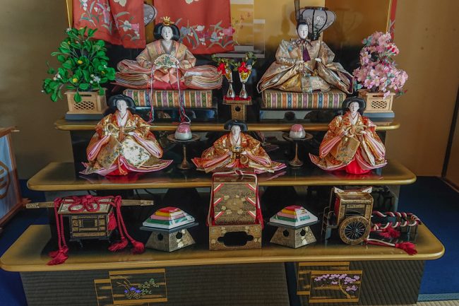 江戸時代中期に京都で「京都御所紫宸殿」を模して造られたと伝わる「御殿雛」が、豪商稲葉本家奥座敷十畳の間一杯に飾られ、稲葉家各部屋には地元の人から譲り受けた新旧お雛様を飾られます。