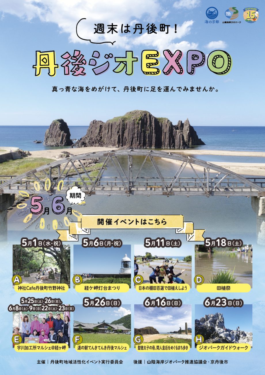 イベント情報 イベント一覧 カレンダー表示 2019年5月1 – 6月23日 丹後ジオEXPO開催! 開催日: 2019年5月1日 - 2019年6月23日 会 場: 丹後町各イベント会場 真っ青な海をめがけて、丹後町へ足を運んでみませんか? 5月~6月は週末を丹後町で楽しもう!