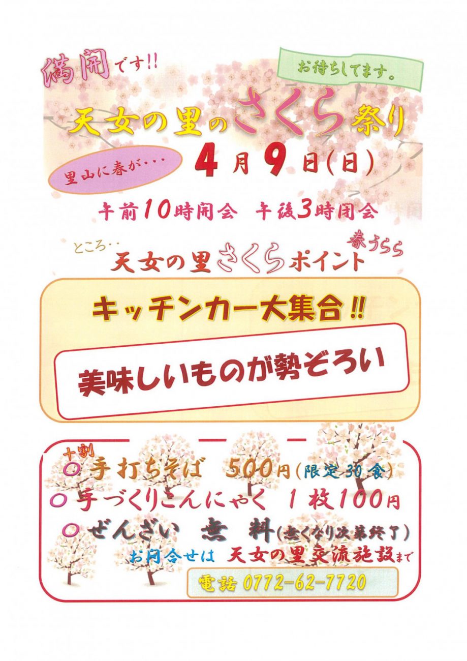 のどかな里山に春が来ました。今年も天女の里ではさくら祭りが開催されます。