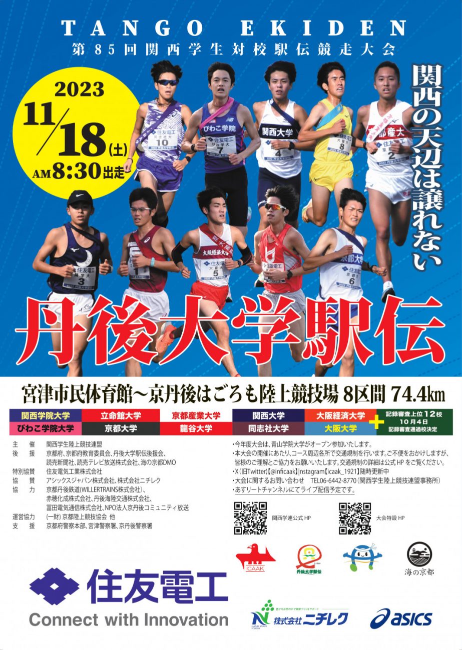 第85回目を迎える関西学生対校駅伝競走大会が、丹後地域で開催!