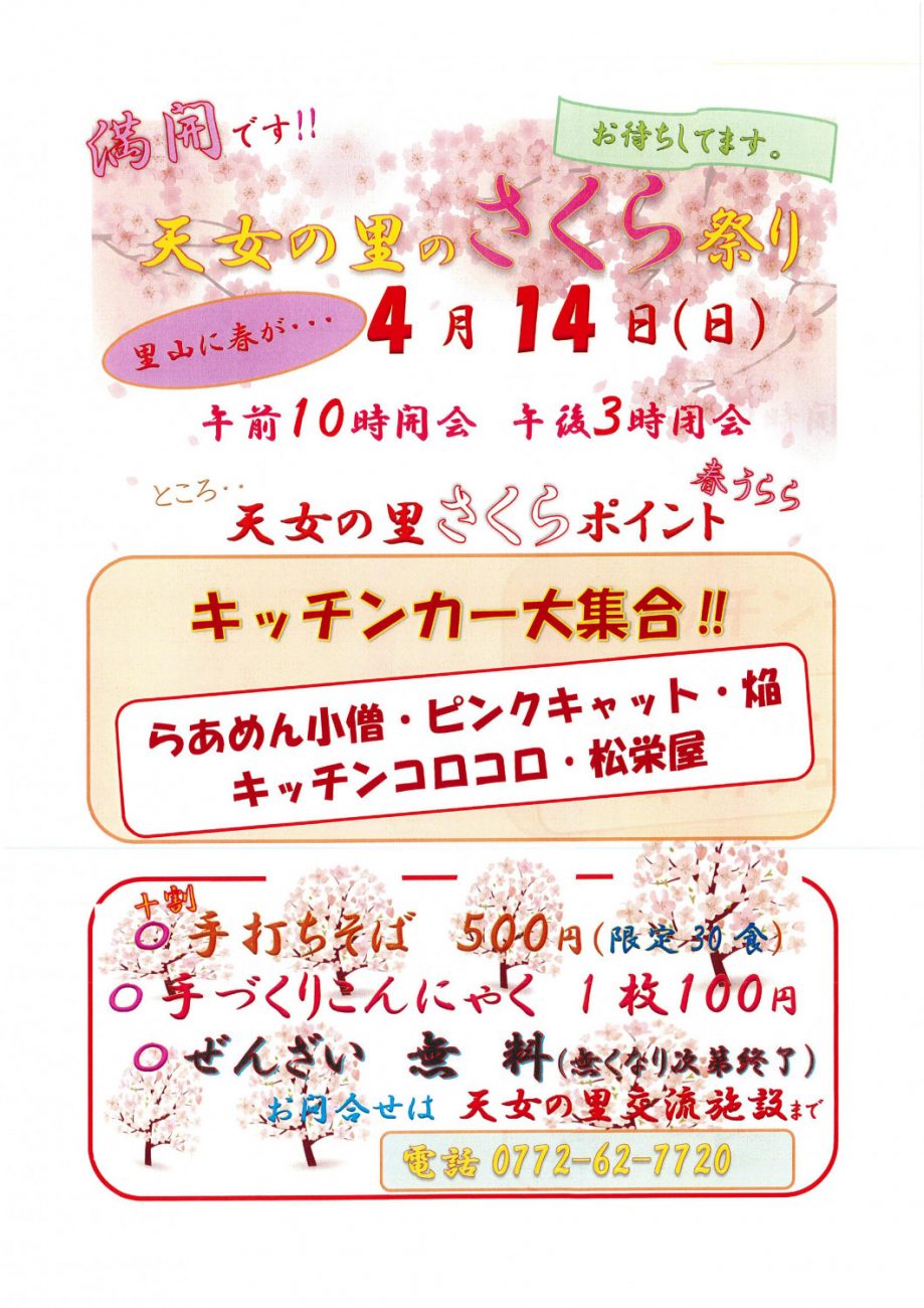 天女の里のさくら祭りで、桜に囲まれながら春を満喫してみてはいかがでしょうか。