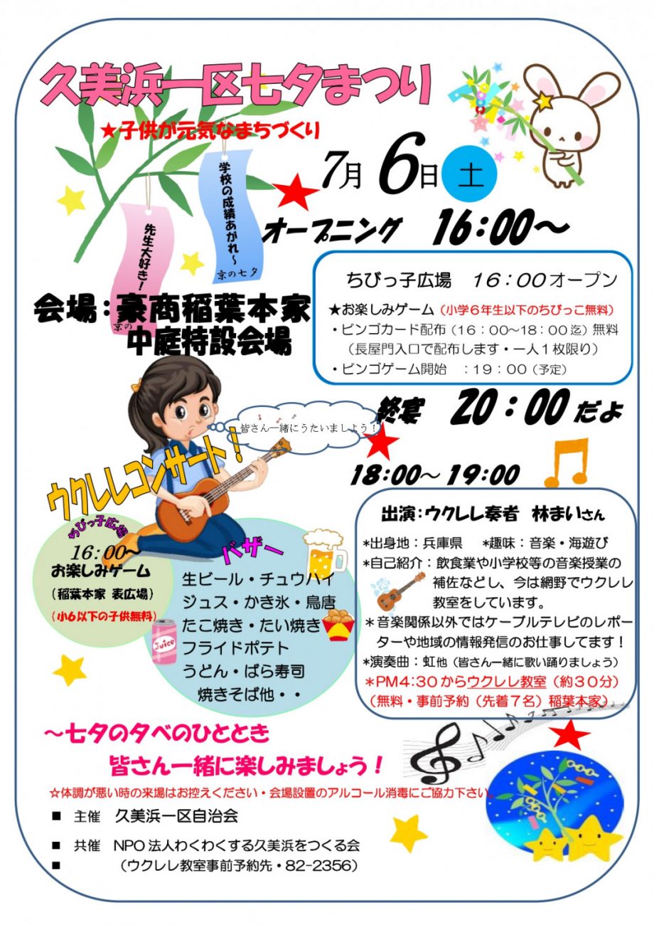 今年も豪商稲葉本家を会場に、久美浜一区七夕まつりが開催されます。