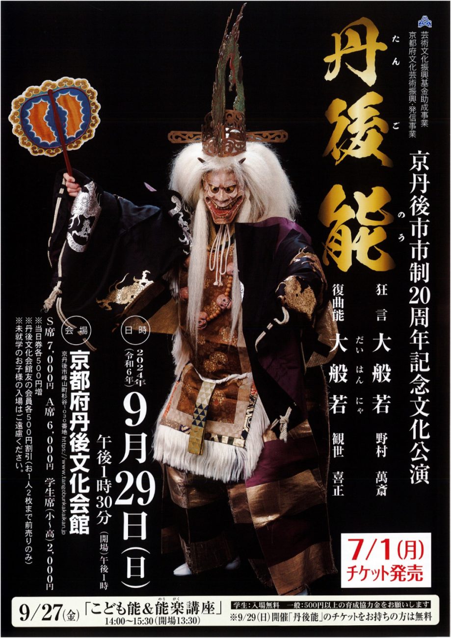 2024年9月29日(日)京都府丹後文化会館にて、京丹後市市制20周年記念文化公演『丹後能』が開催されます。