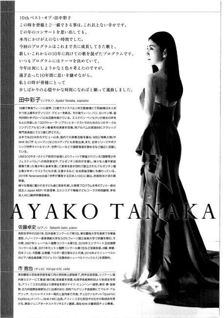 田中 彩子(ソプラノ)、佐藤 卓史(ピアノ)、市 寛也(チェロ)によるリサイタルをご鑑賞いただけます。