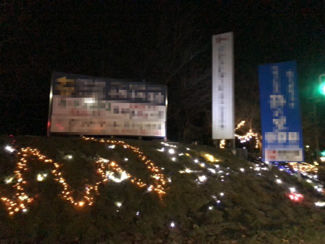 今年は、斜面に這わすタイプのLEDイルミネーションに絞り、国道沿いの斜面へより広範囲に設置しました。