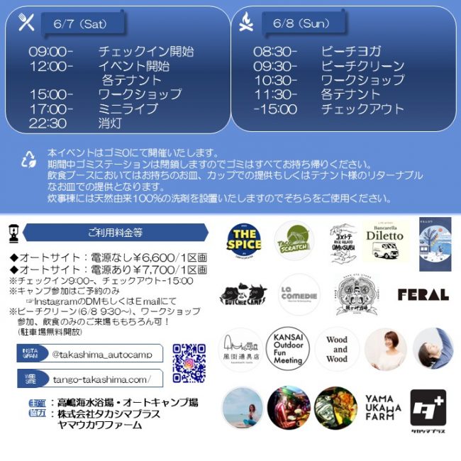 ※ビーチクリーン(6月8日 9:30-)は駐車場無料開放!ワークショップ参加・飲食のみのご来場も可能です。