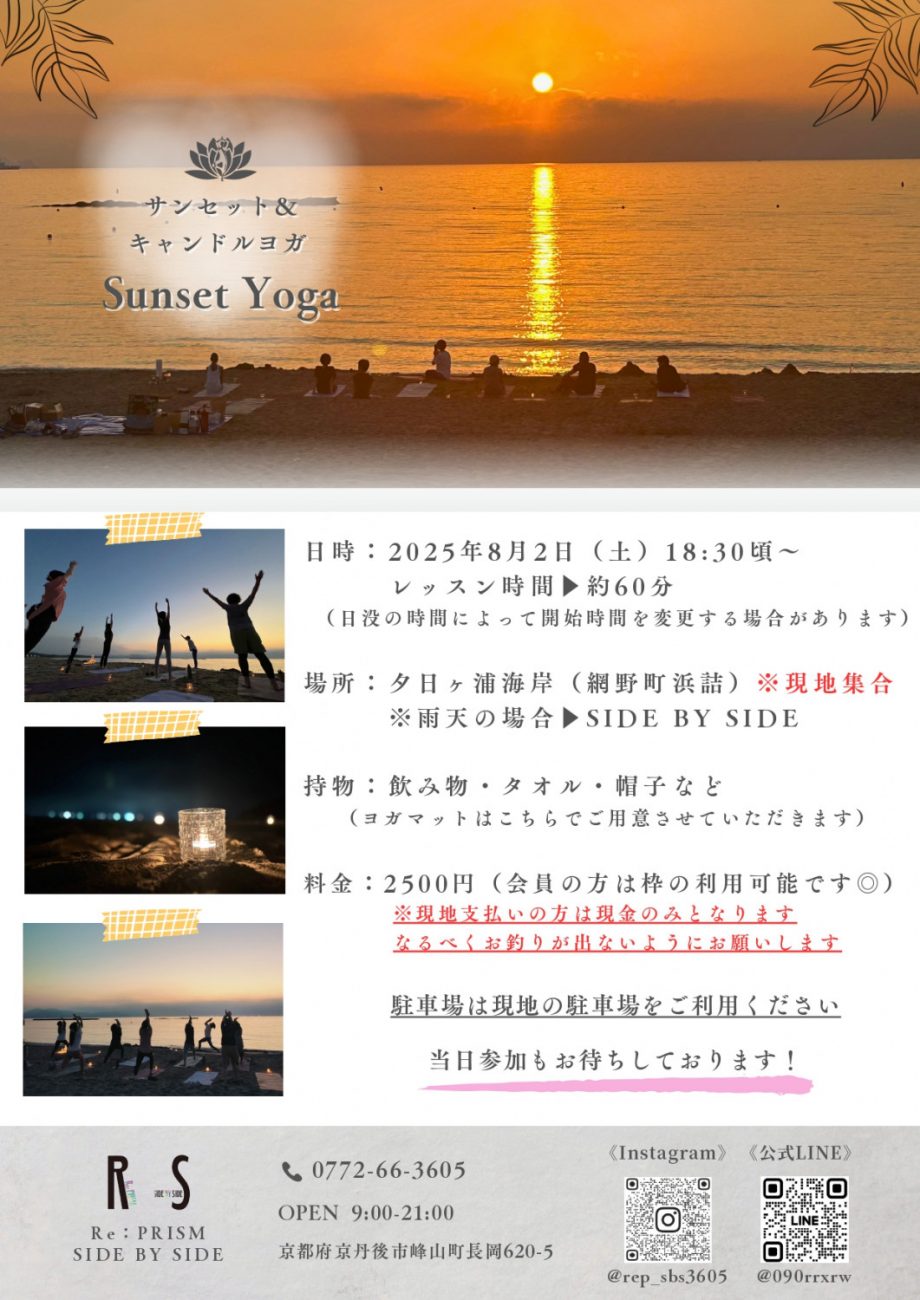 夕日の名所”夕日ヶ浦海岸”でヨガレッスンが開催されます。