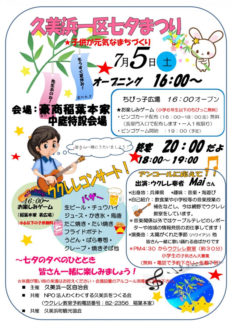 今年も豪商稲葉本家を会場に、久美浜一区七夕まつりが開催されます。
