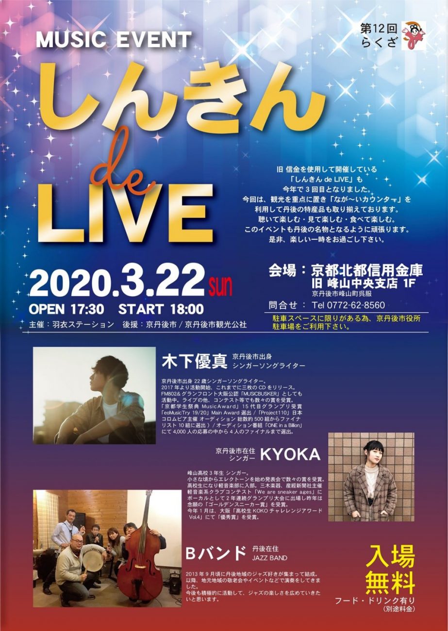 今年で3年目となる「しんきんde LIVE」は京都北都信用金庫の旧峰山中央支店1Fを使用しためずらしいライブ。