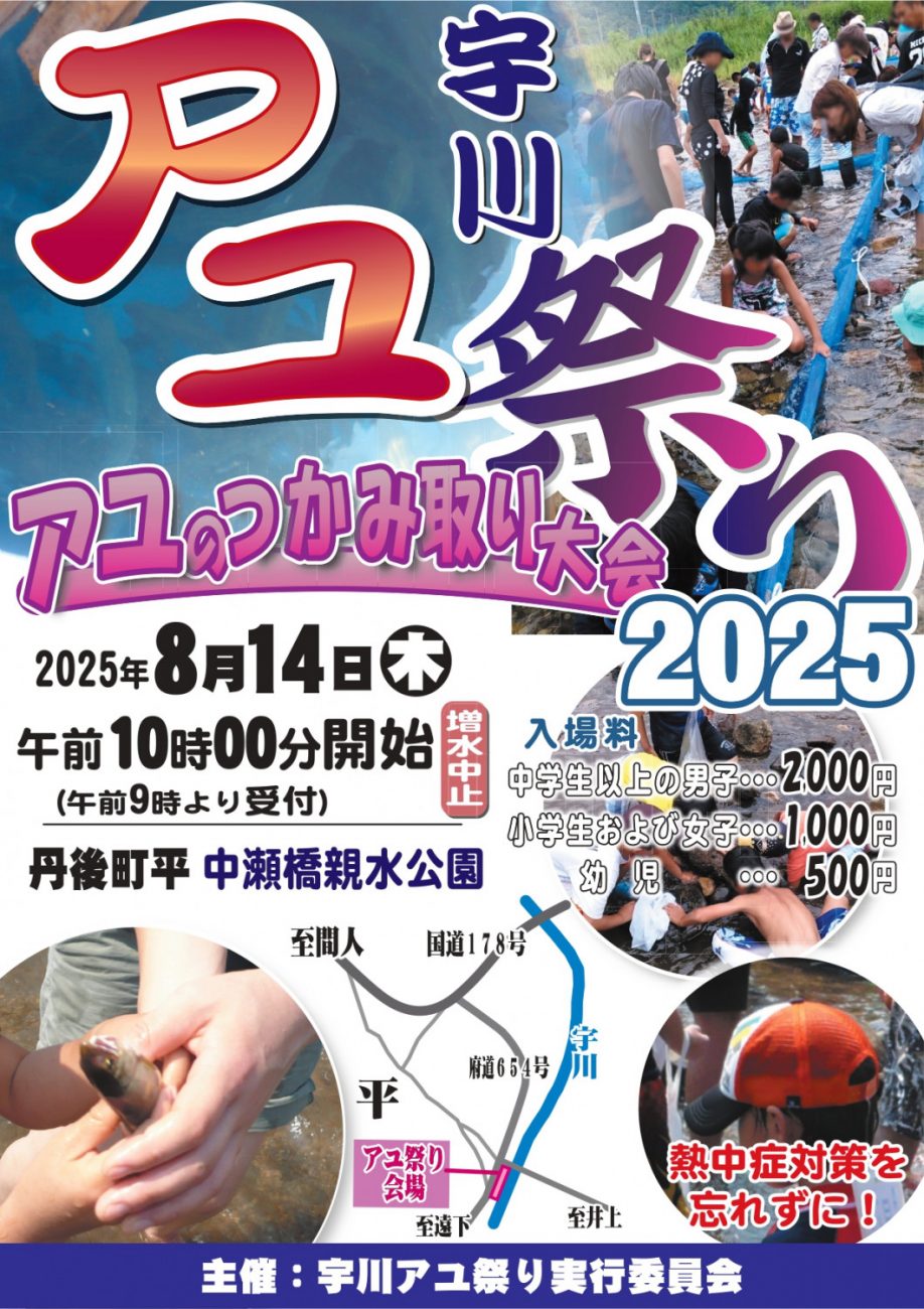 アユのつかみ取り大会「宇川アユ祭り」が開催されます。