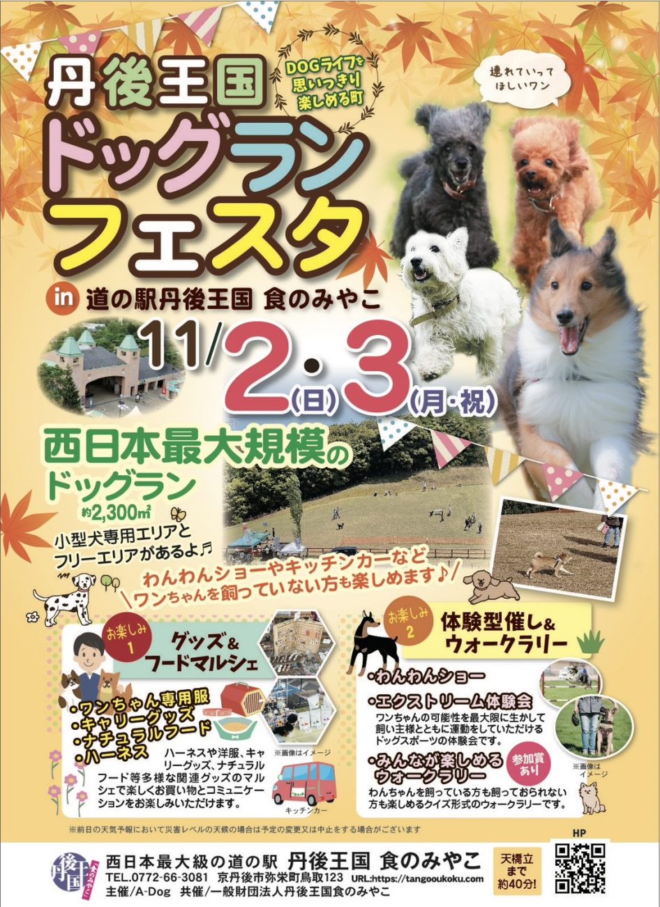 西日本最大規模のドッグランがある道の駅丹後王国「食のみやこ」にて、ドッグランフェスタが開催されます。