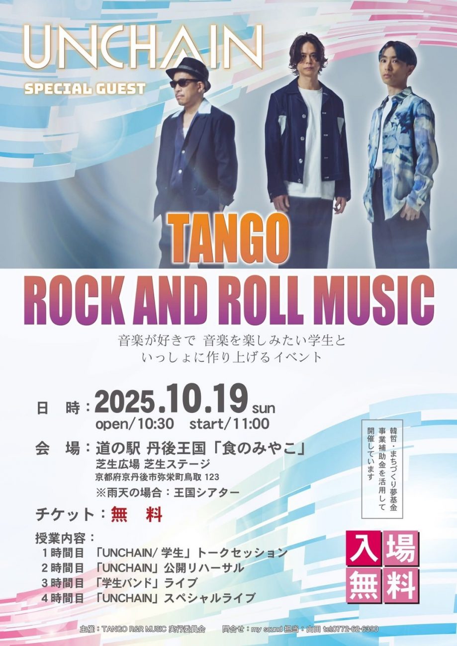 音楽が好きで音楽を楽しみたい学生といっしょに作りあげるイベントが、西日本最大級の道の駅・道の駅丹後王国「食のみやこ」にて、開催されます。