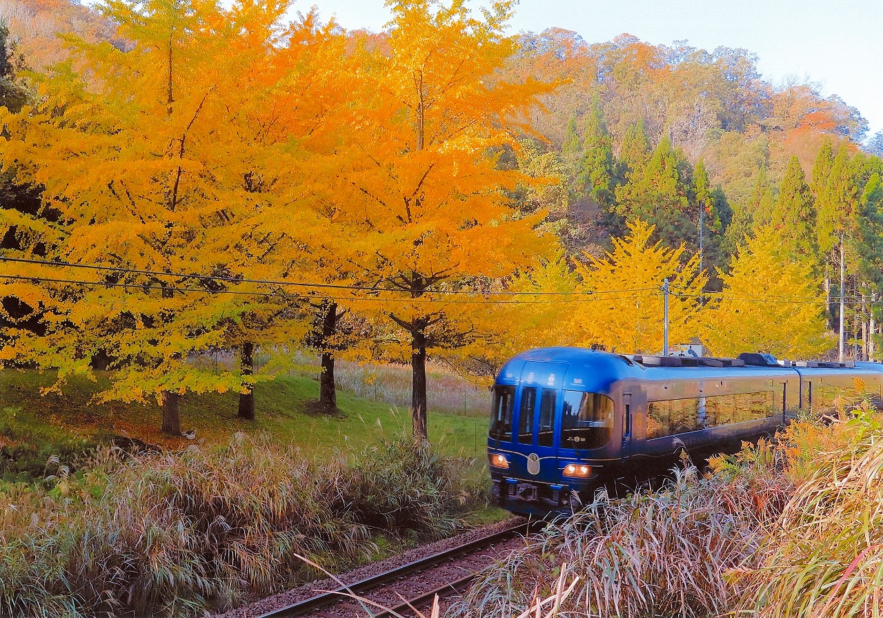 夜空を彩る黄金色の大銀杏を、電車の車窓から眺めるのもおすすめ。