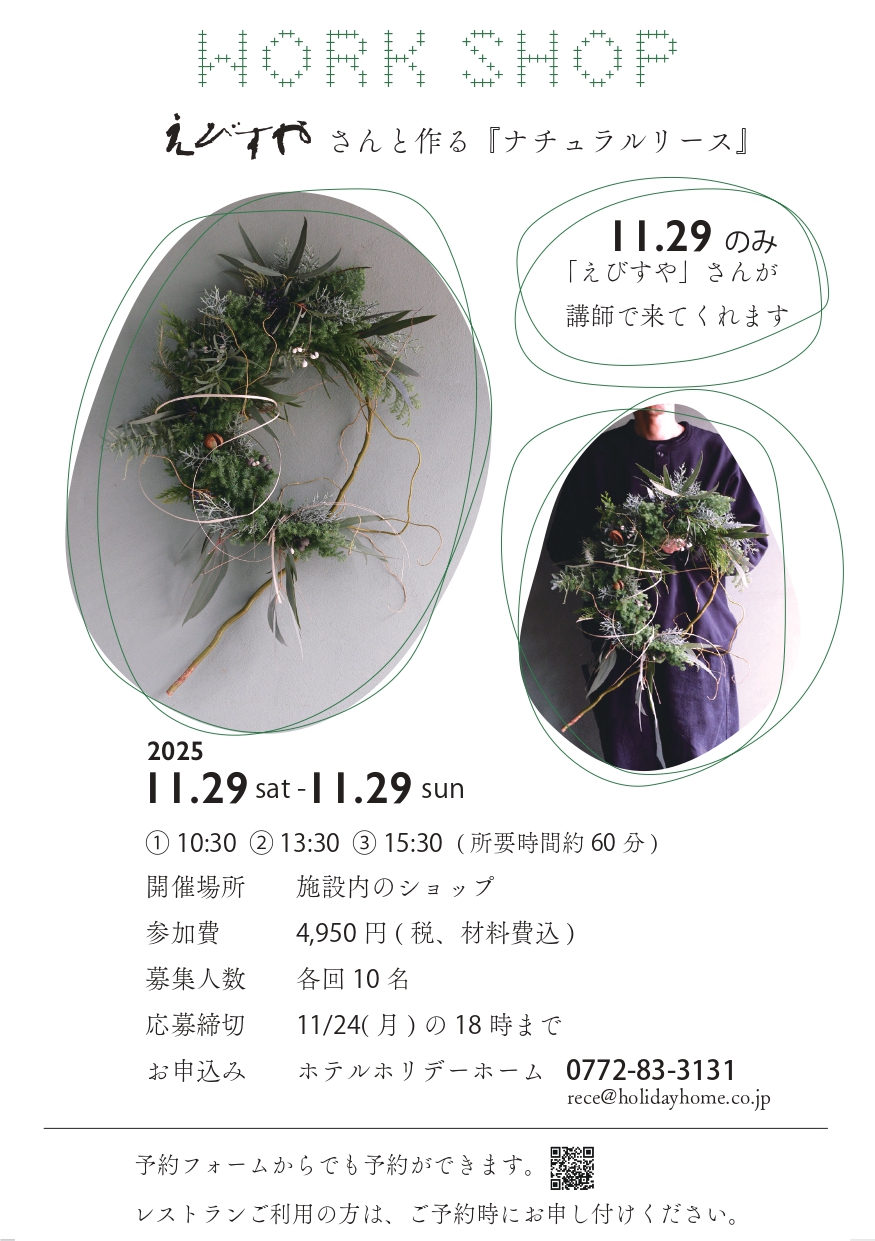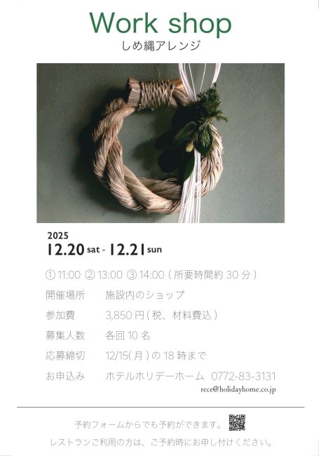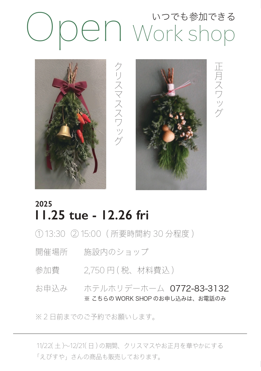 クリスマスまたはお正月のスワッグを制作いただけます。