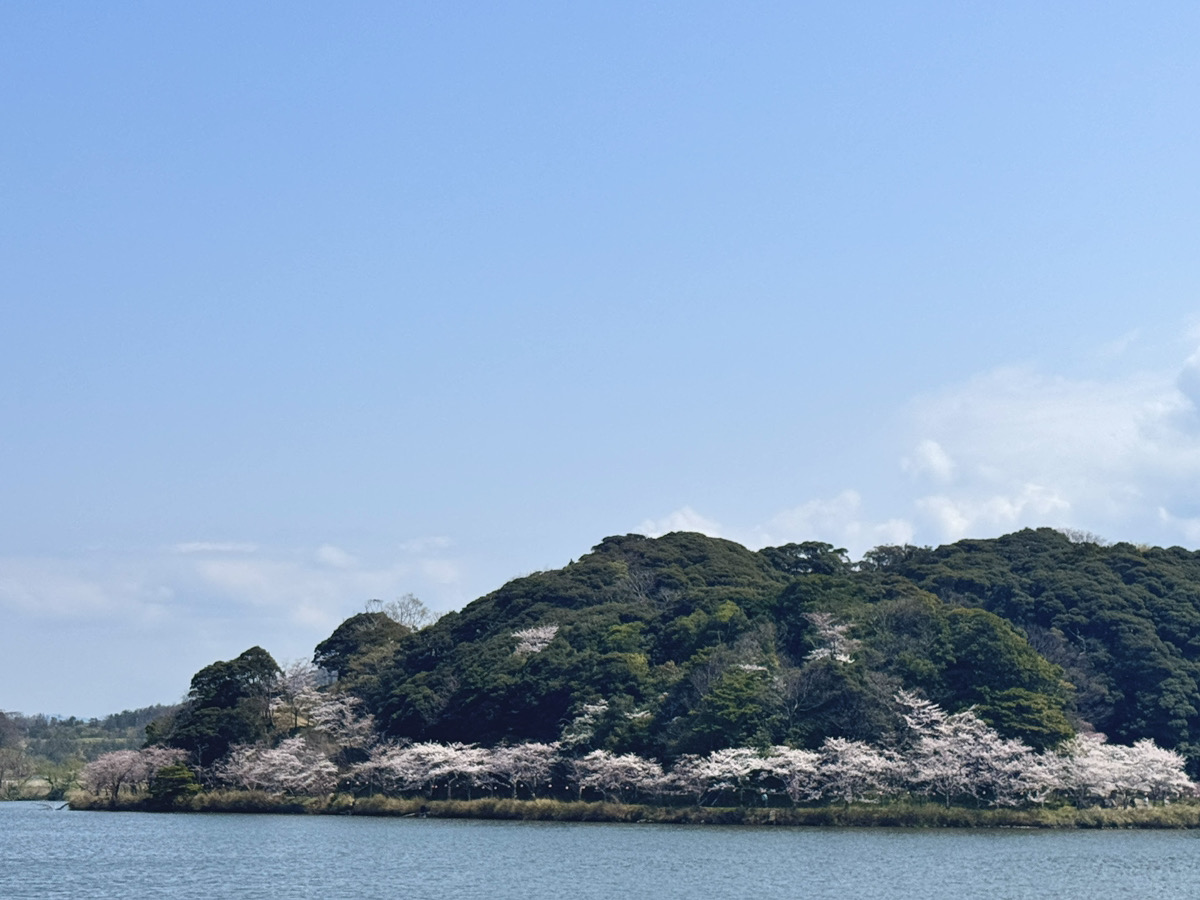 3月下旬から桜が見頃を迎え、湖の周りに植えられた約500本のソメイヨシノ・山桜が咲き乱れます。