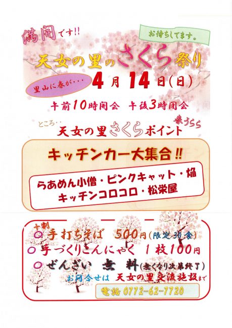 柔らかな日差しの温もりを感じる春は、おでかけにぴったりの季節。 天女の里のさくら祭りで、桜に囲まれながら春を満喫してみてはいかがでしょうか。 -日時- 2024年4月14日(日) 時間 10:00~15:00 場所 天女 […]