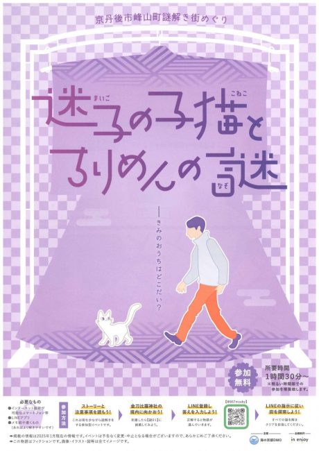丹後ちりめん誕生の地の一つ、峰山町を舞台にしたリアル謎解きに挑戦してみませんか? 謎を解いて、迷子の子猫のお家を一緒に探してあげよう! (参加費)無料 (必要なもの) インターネット接続が出来るスマートフォン等 LINE […]