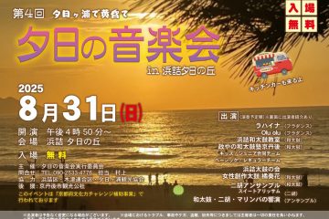 夕日の名所としてしられる夕日ヶ浦を舞台に、今年も『夕日の音楽会』が開催されます。 浜詰夕日の丘から美しい夕景と演奏を鑑賞しながら、キッチンカーのフードやドリンクを堪能しませんか? まるでハワイにいるかのような優雅なフラダ […]