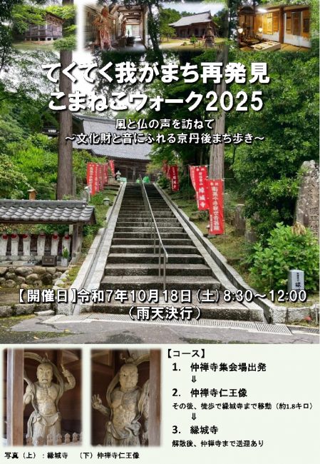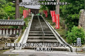 今年も26回目となる「てくてく我がまち再発見」が開催されます。 今回のテーマは「風と仏の声を訪ねて~文化財と音にふれる京丹後まち歩き~」。 開催日の10月18日(土)は、年に一度の縁城寺の寺宝の虫干しの日で 普段見ること […]