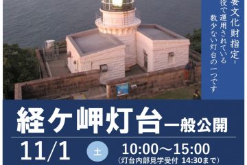 令和4年12月に重要文化財に指定された『経ケ岬灯台』の一般公開が行われます。 明治期に建造され、今もなお現役で運用されている灯台です。 ◇日時◇ 2025年11月1日(土) ※予備日11月2日(日) 時間 10:00~1 […]