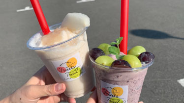 フルーツ農家が自らの畑でとれた新鮮なフルーツを使って、オリジナルドリンクやスムージーを販売するイベント。毎年7月上旬から10月末まで開催されています。この期間中は、京丹後市網野町から久美浜町にかけて国道178号沿いを走ると、フルーツトレイル加盟店の直売所や道の駅に目印ののぼりが立っています。