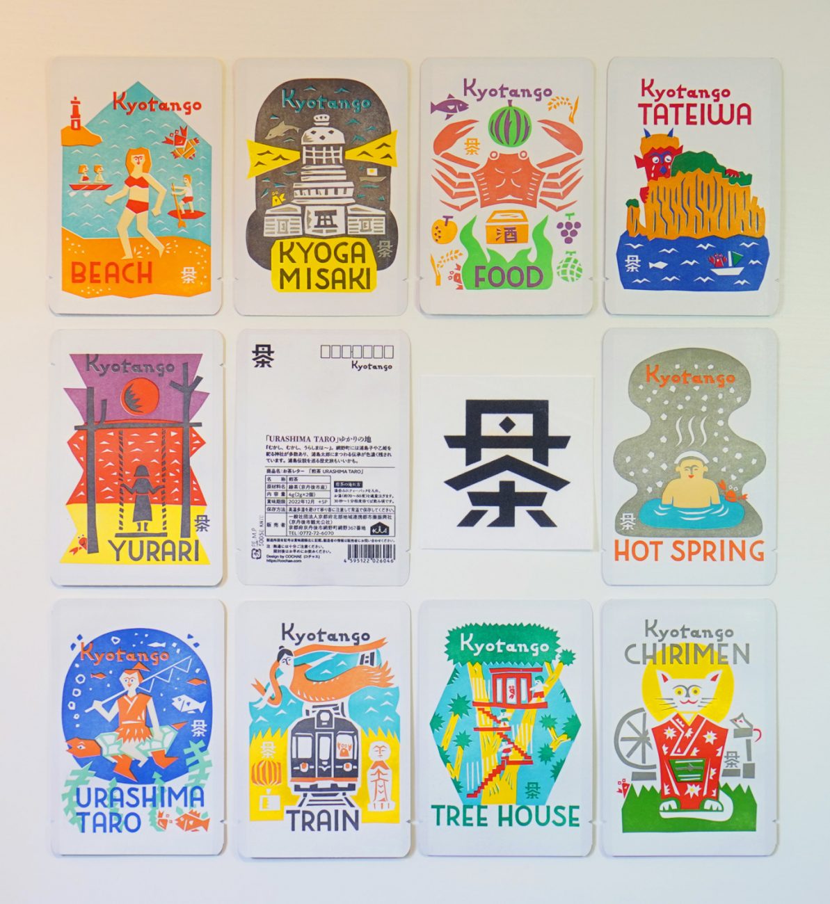 京丹後市観光公社では、市内に数多くあるシンボルや観光スポット等をデザインした京丹後市産緑茶のティーパック商品「お茶レター」を10種類制作しています。
