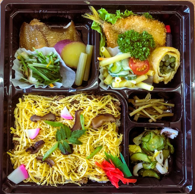 地元食材で「まごわやさしいこ」の栄養バランスで作られた健康メニューの昼食
