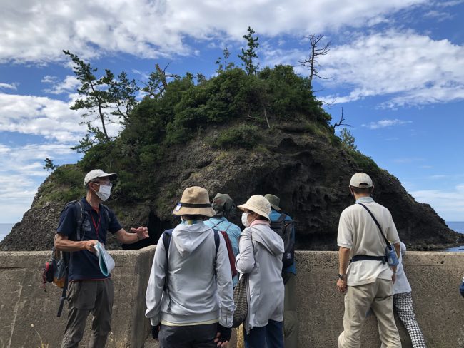 準備体操でしっかり体をほぐし、ジオパークの美しい海岸線を眺めながら、レトロな漁師町を地元ガイドと一緒に歩きます。きれいな景色で心身をリフレッシュします。