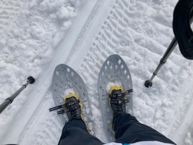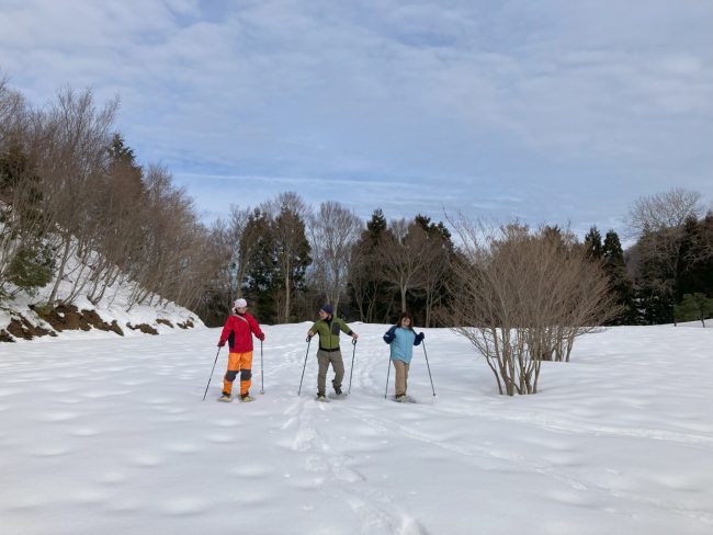 スノーシューを装着してのウォーキングは通常の1.5倍~2倍のエネルギー消費効果があり、心身のリフレッシュや筋トレ、脳トレに良いとされています。新雪の林道をスノーシューで約3㎞、野生のいきものの足跡を観察しながら絶景ポイントをめざします。2日目はスノーモービルに引かれたソリにのり、新雪の森林公園内をドライブし、雪山の爽快さを満喫します。冬の運動不足対策に最適な手軽に楽しめる自然を活用した気候