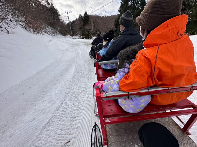 山頂・ホテル風のがっこう京都までスノーモービルで移動しチェックイン