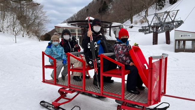 山頂・ホテル風のがっこう京都までスノーモービルで移動しチェックイン
