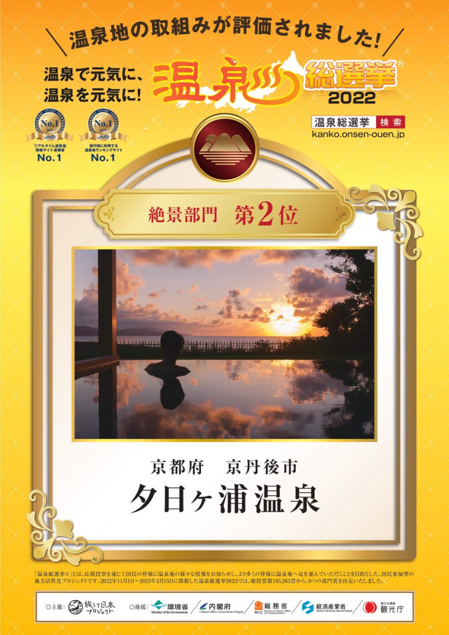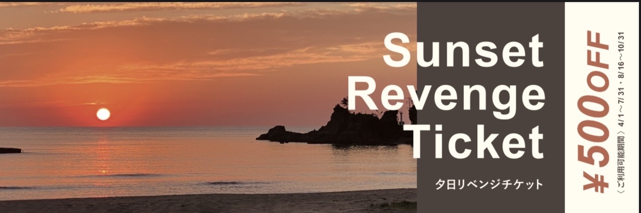夕日ヶ浦観光協会に所属する36軒の宿泊施設では、雨や曇りで夕日を見られなかったお客様に、ぜひもう1度夕日を見に来ていただきたいと、次回宿泊時に使える500円クーポン券「夕日リベンジチケット」をお渡ししています。全国の温泉地の人気投票「温泉総選挙2022」で絶景部門第2位に輝いた夕日ヶ浦の景色をお楽しみください。
