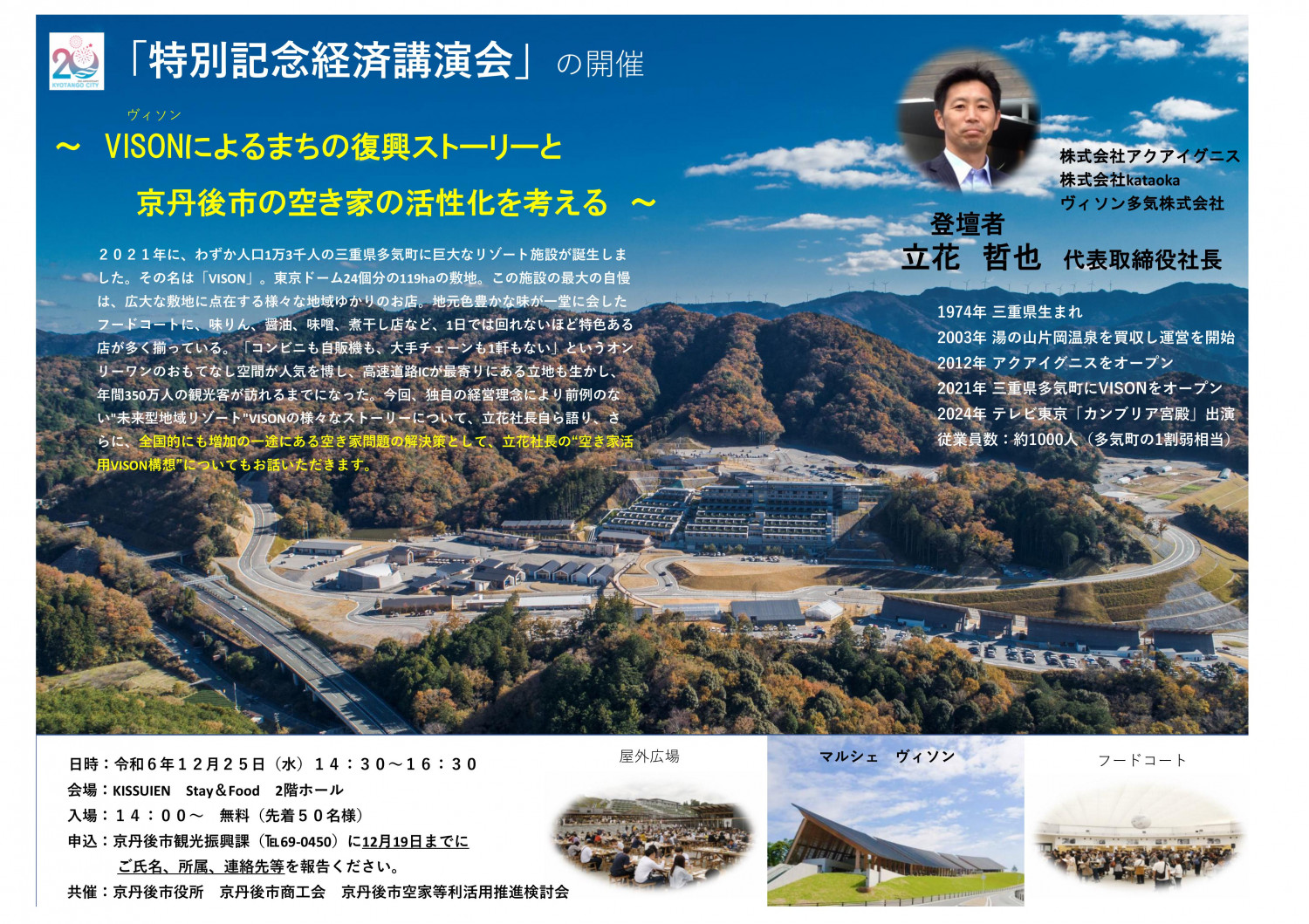 「特別記念経済講演会」の開催 ~VISONによるまちの復興ストーリーと京丹後市の空き家の活性化を考える~