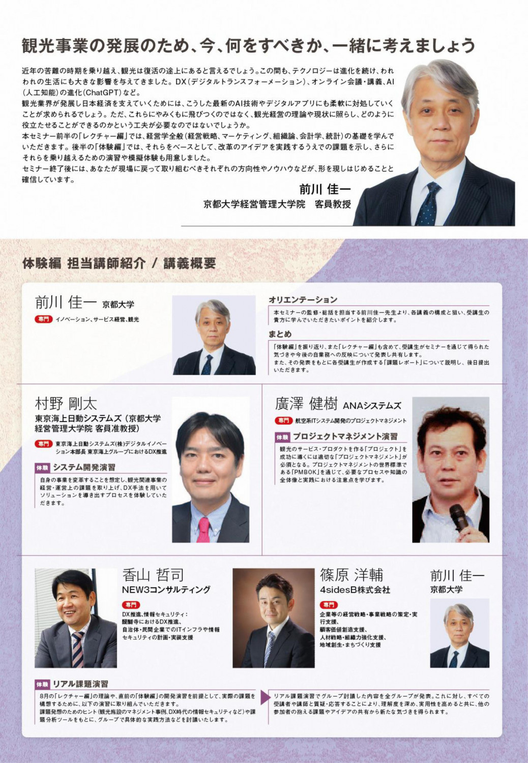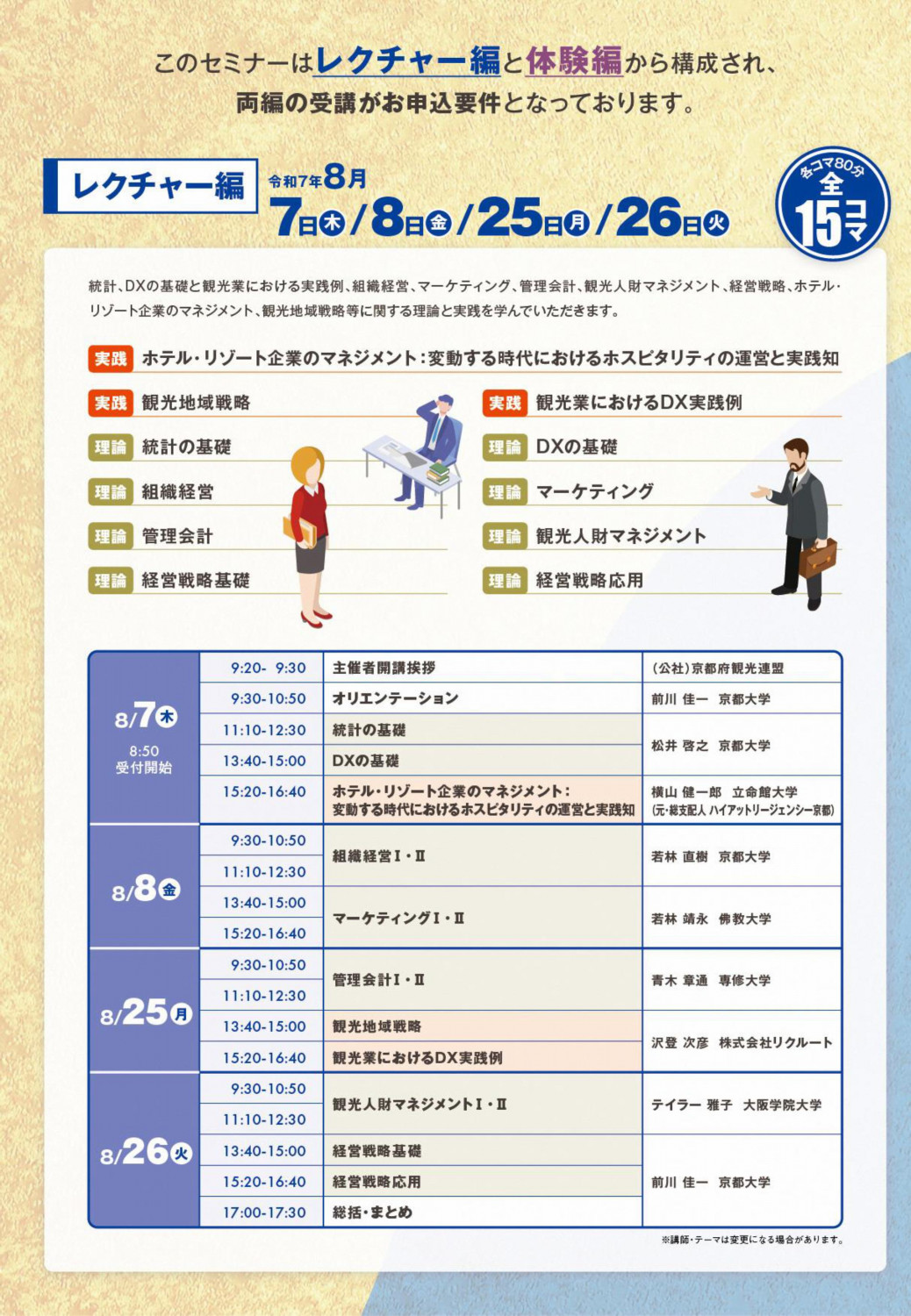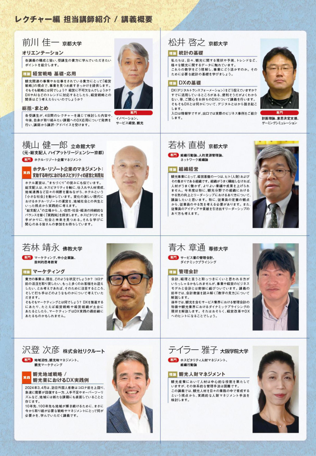 今年度は元外資系ホテル支配人である立命館大学の横山教授を新たに講師にお迎えし、ホテル経営のリアルな経験に基づく講義も実施します。