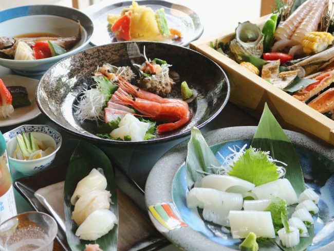 【日帰り昼食プラン】丹後半島のイカづくし × トロ箱盛り海鮮炭火焼|イカづくしコース【期間限定】