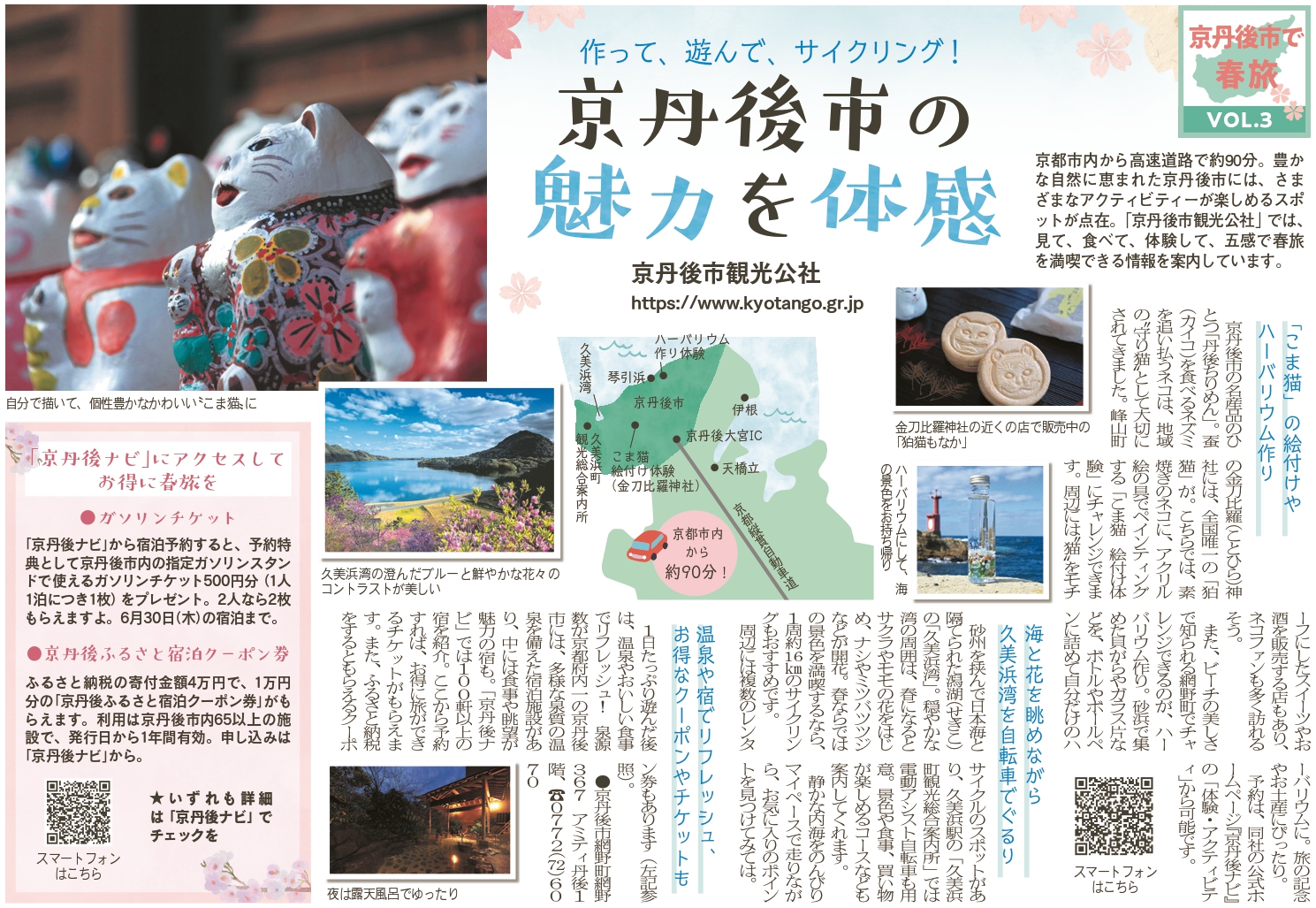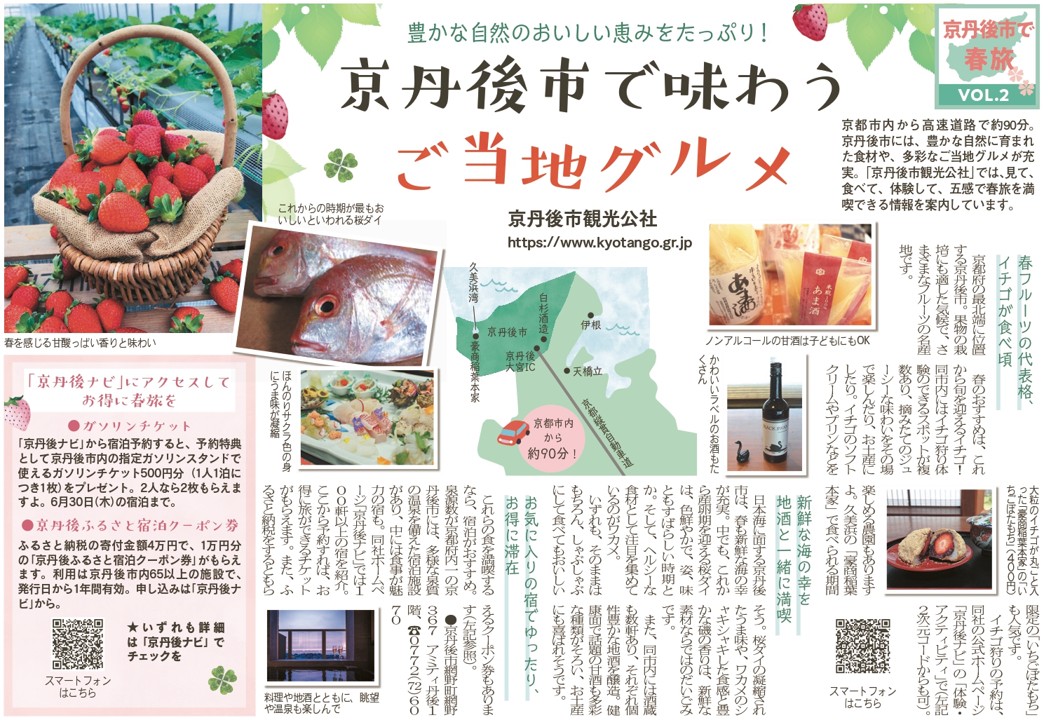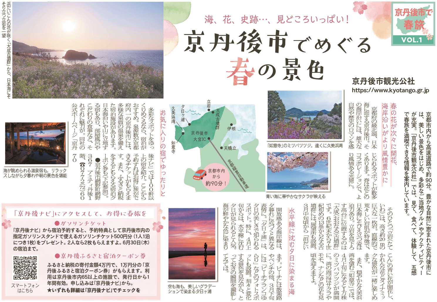 京丹後市観光公社では、海と花々の絶景、桜鯛やイチゴなどの季節の食材、かわいい!を作るアクティビティなど、京丹後の春の魅力を発信しています。