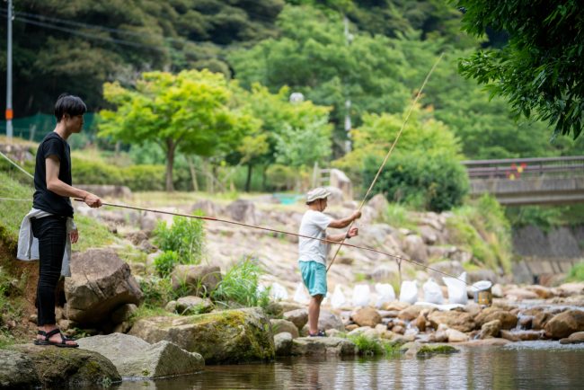 敷地内には、古民家風コテージやキャンプサイトなどの宿泊施設があります。春には”さくら祭り”、夏には”納涼祭”、秋には”もみじ祭り”など季節ごとのイベントが毎年開催されています。移り変わる四季を、のどかな里山で体感できます。